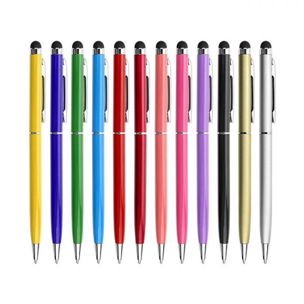 Descripción: Lapicero metálico, de sistema giratorio, con punta touch en la parte superior para pantallas táctiles. (Tablets, celulares, etc)