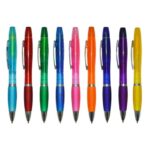 Descripción: Lapicero plástico de sistema giratorio para la salida de la carga. y resaltador del mismo color.